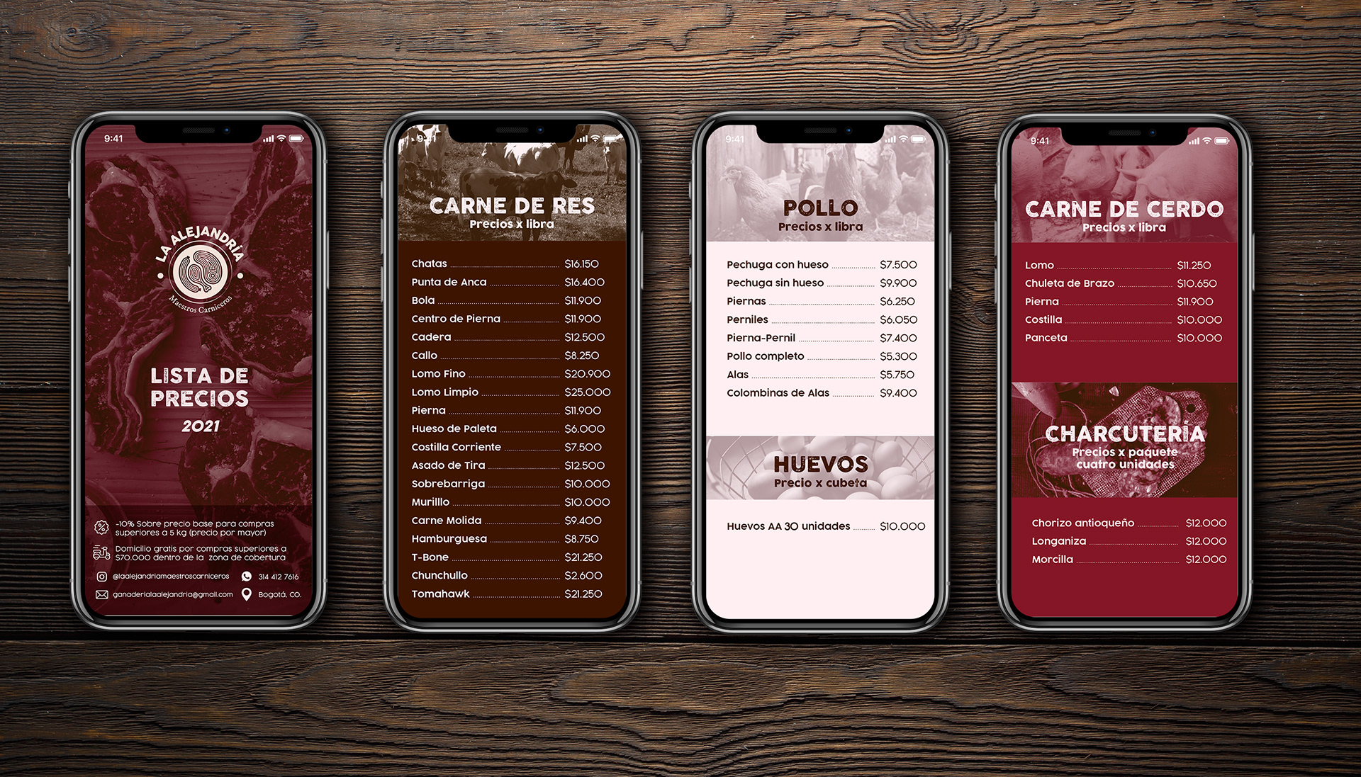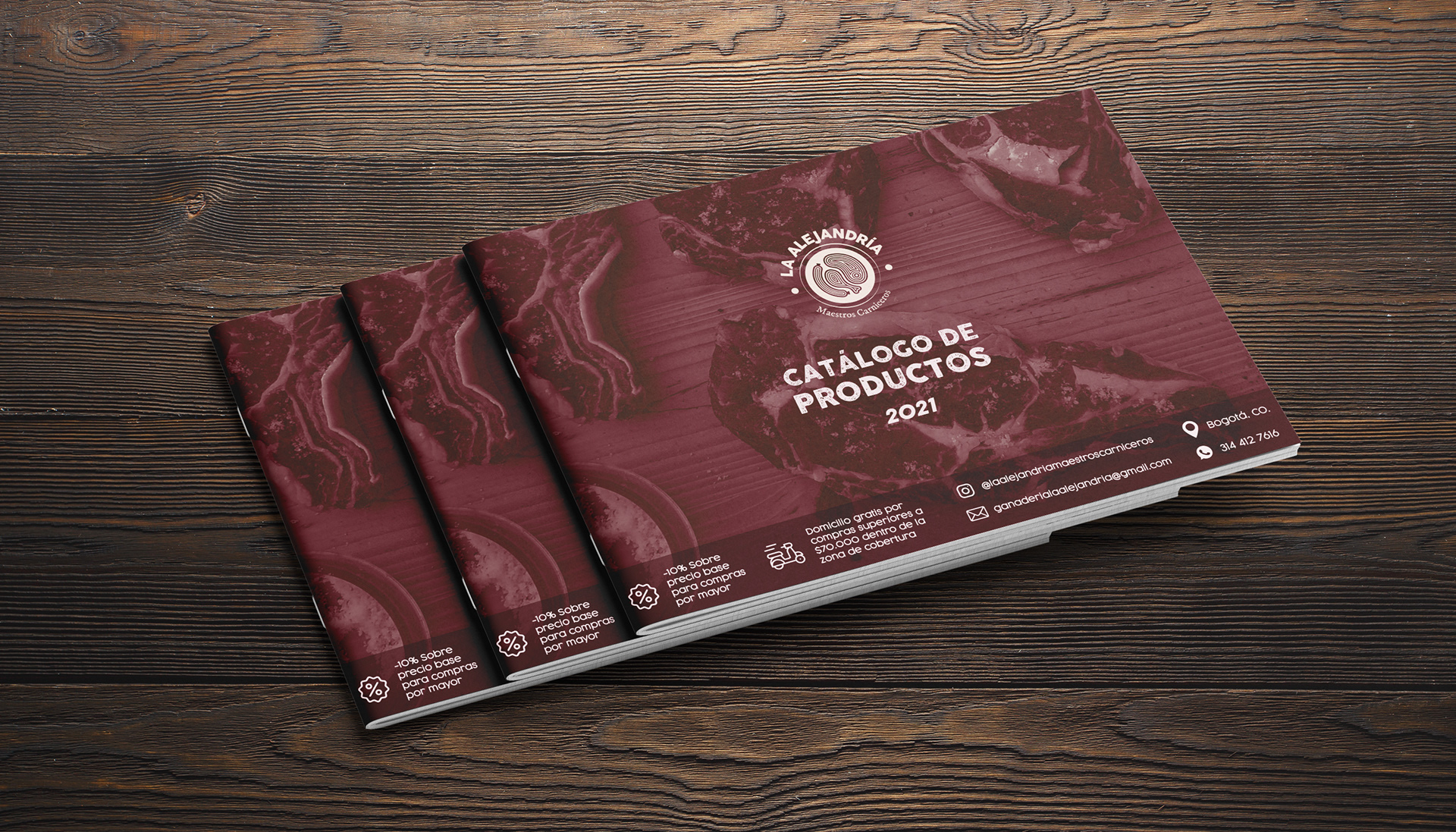 Visual identity design for La Alejandría, a virtual butcher shop.
