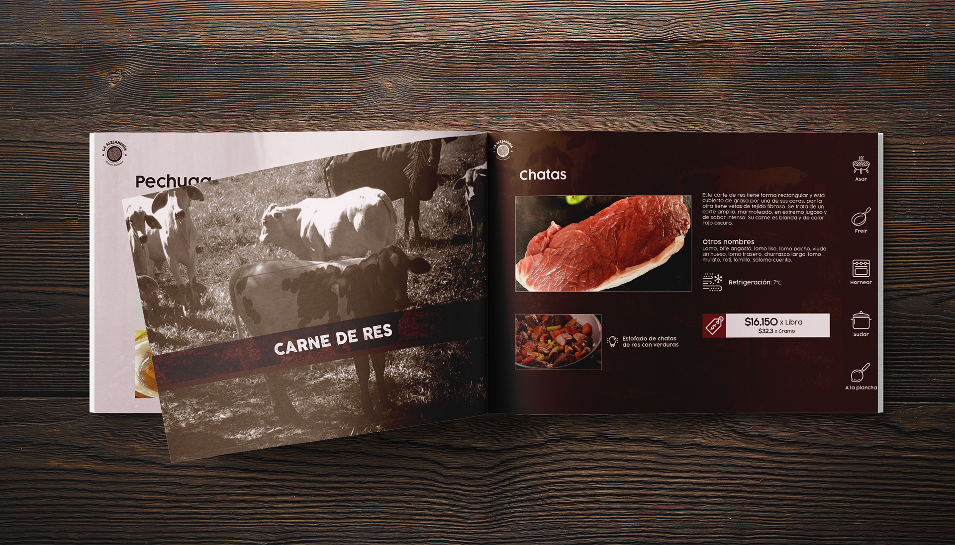 The fundamental concept behind the creation of La Alejandría's graphic identity was its variety of meats: as one of its core values, the aim was to communicate to customers, through imagery, that all of its meat products can be found in one place.