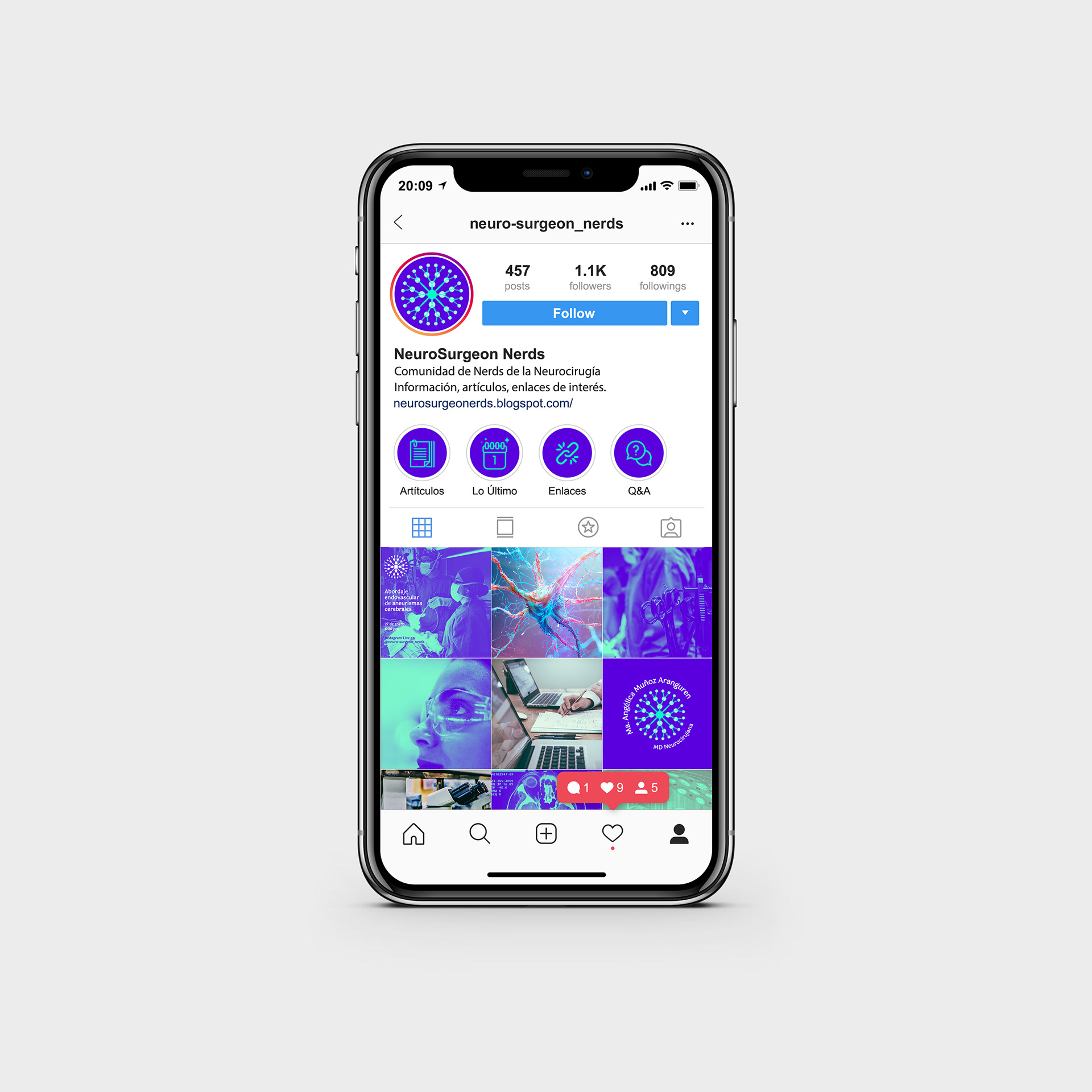 Attending to the mission of creating collaboration networks within the neurosurgery sector, the symbol represents a knowledge hub that ramifies towards the community and, at the same time, makes an analogy to a neuron and the nervous ramifications that transport information.