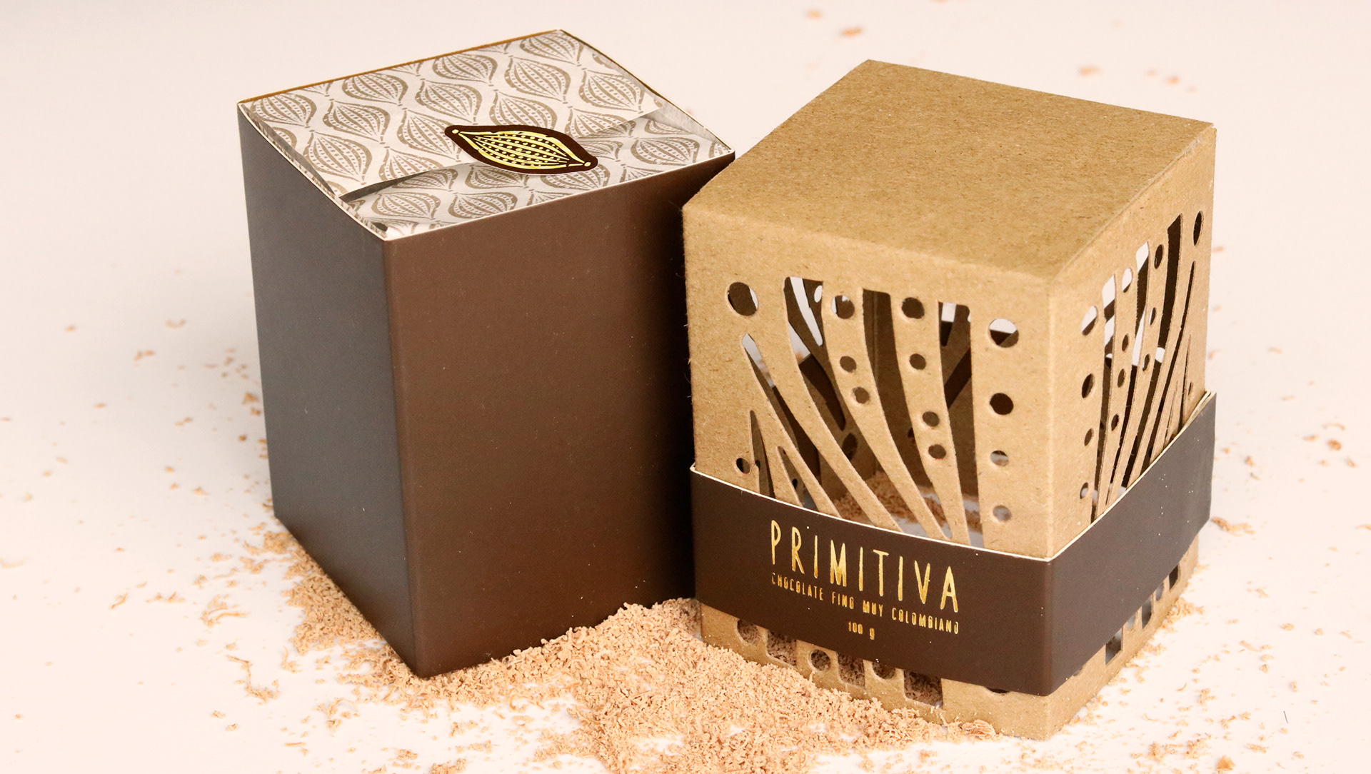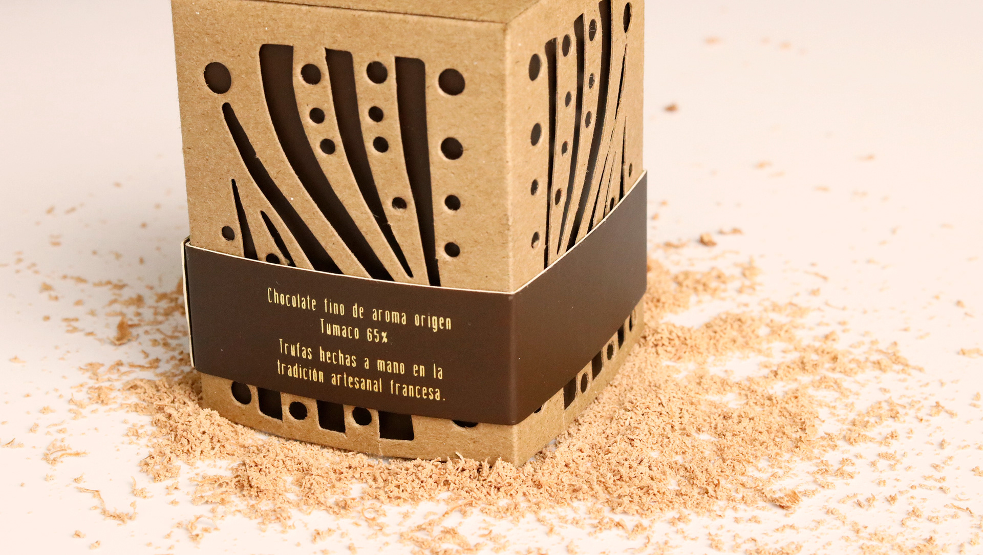 Christmas Special Edition package for fine Colombian chocolate truffles. The package lid transforms into a chandelier for special Christmas Eve celebrations. For this project, I also designed the graphic identity of Primitiva.