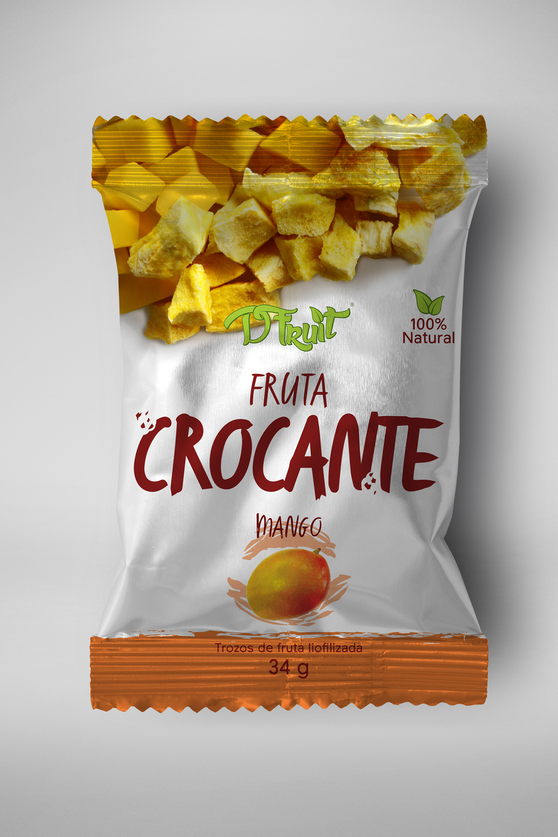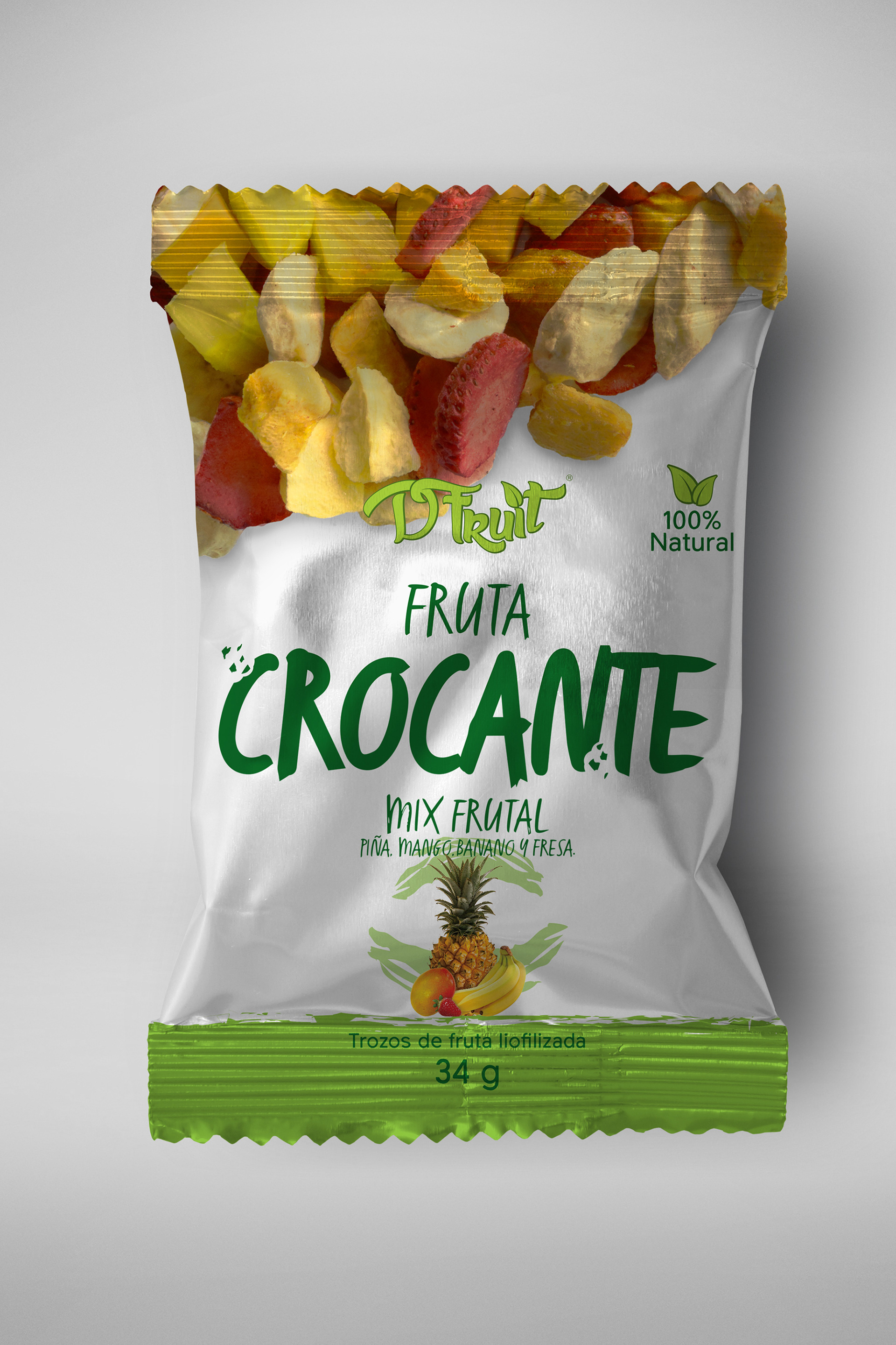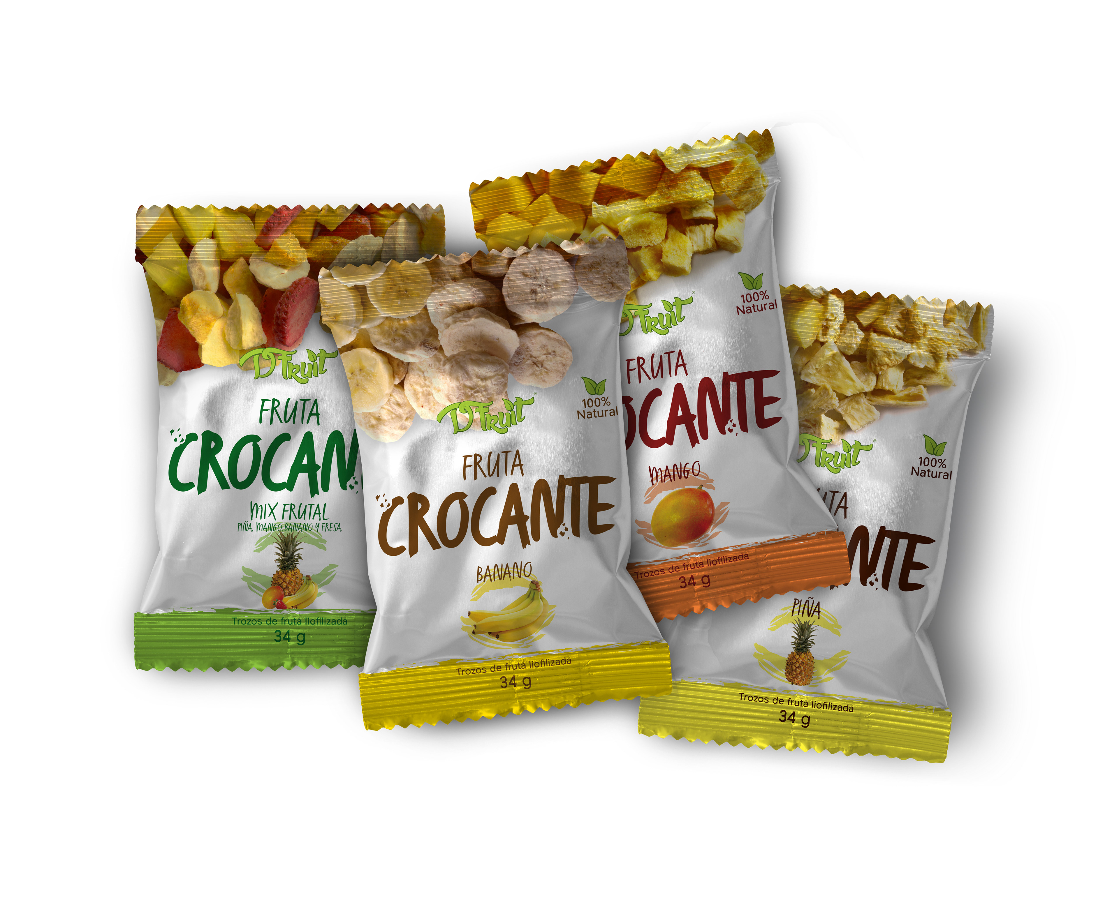 Photography and packaging design for four varieties of freeze-dried fruit snacks.