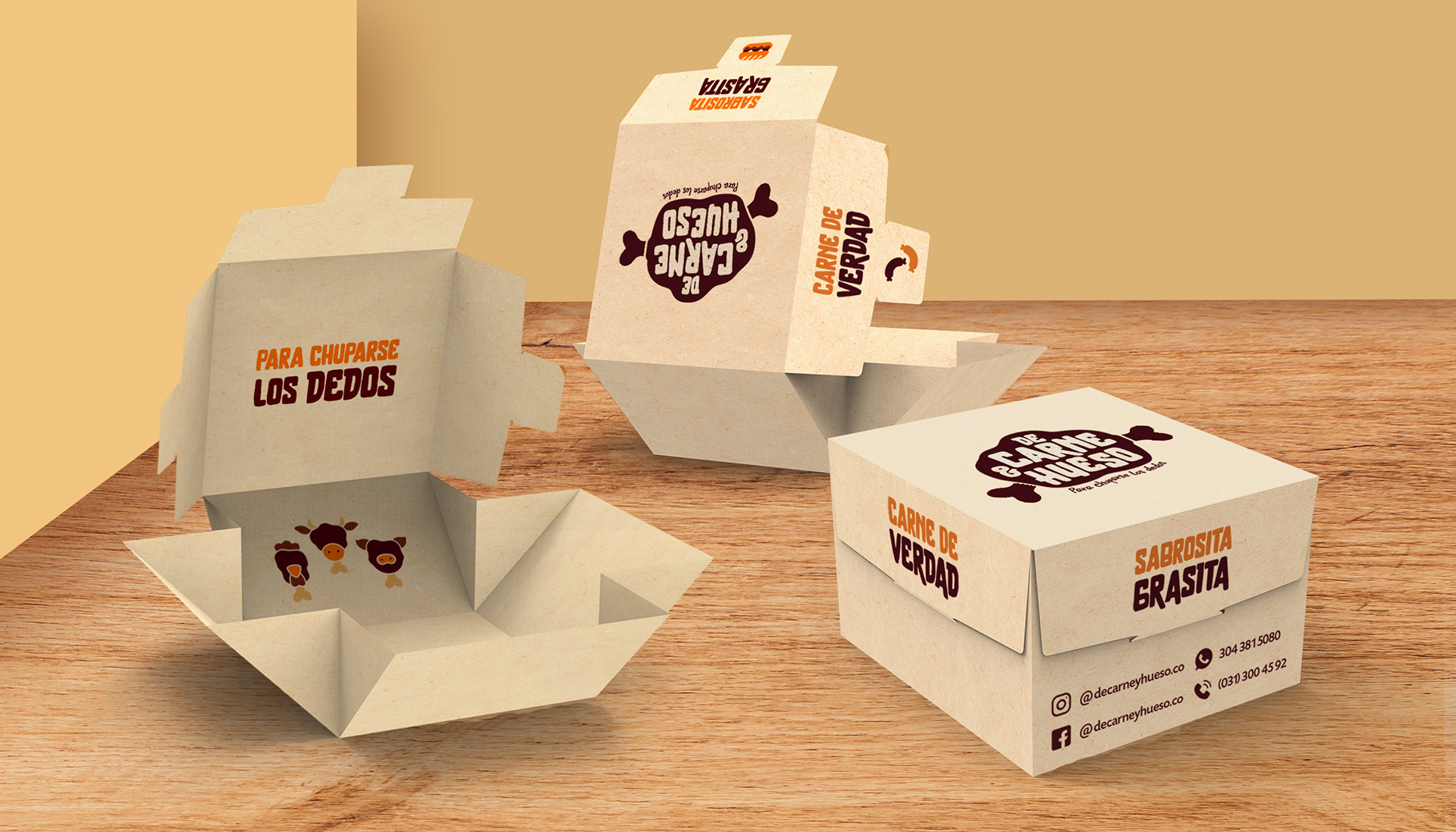 Box and bag design for food delivery. Renders and photographs of the packaging and food discovery experience.